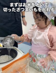 まずはお米をといで、切ったさつまいもを炊飯器へ。